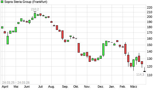 Mit dem Rücksetzer auf 115,80 EUR hat die Sopra Steria Group-Aktie (ISIN FR0000050809) am 23.03.2026 ein neues 5-Jahres-Tief erreicht und damit den Kurs vom 20.03.2026 eingestellt.