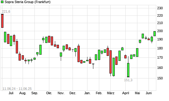 Mit dem Anstieg auf 197,50 EUR hat die Sopra Steria Group-Aktie (ISIN FR0000050809) am 10.06.2025 ein neues 6-Monats-Hoch erreicht und damit den Kurs vom 09.06.2025 eingestellt.
