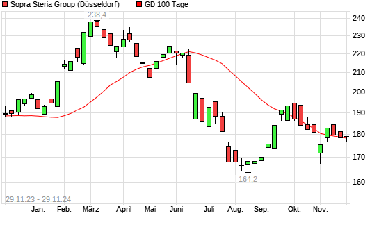 Mit dem Anstieg auf 179,90 EUR hat die Sopra Steria Group-Aktie am 28.11.2024 die 100-Tage-Linie nach oben gekreuzt.