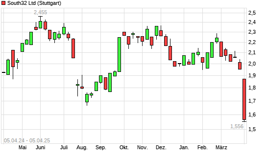 Mit dem Rücksetzer auf 1,61 EUR hat die South32-Aktie (ISIN AU000000S320) am 04.04.2025 ein neues 3-Jahres-Tief erreicht und damit den Kurs vom 28.02.2024 eingestellt.
