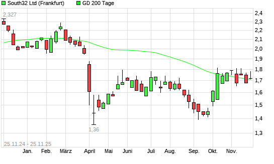 Mit dem Anstieg auf 1,78 EUR hat die South32-Aktie am 24.11.2025 die 200-Tage-Linie nach oben gekreuzt.