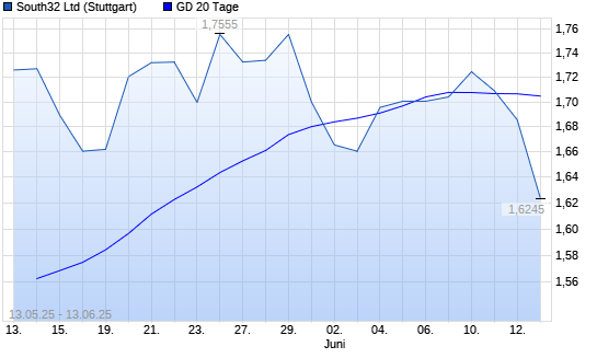 Mit dem Rücksetzer auf 1,70 EUR hat die South32-Aktie am 12.06.2025 die 20-Tage-Linie nach unten gekreuzt.