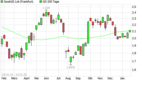 Mit dem Rücksetzer auf 2,09 EUR hat die South32-Aktie am 23.01.2025 die 200-Tage-Linie nach unten gekreuzt.