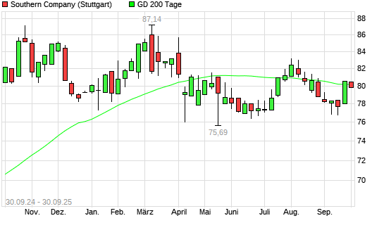 Mit dem Anstieg auf 80,21 EUR hat die Southern Company-Aktie am 29.09.2025 die 200-Tage-Linie nach oben gekreuzt.