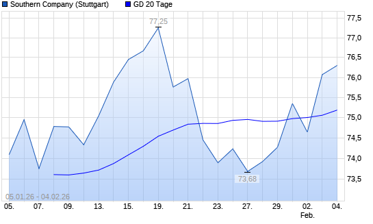 Mit dem Rücksetzer auf 74,90 EUR hat die Southern Company-Aktie am 03.02.2026 die 20-Tage-Linie nach unten gekreuzt.