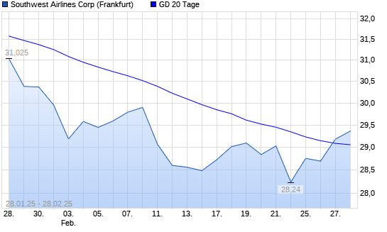 Mit dem Anstieg auf 29,18 EUR hat die Southwest Airlines-Aktie am 27.02.2025 die 20-Tage-Linie nach oben gekreuzt.