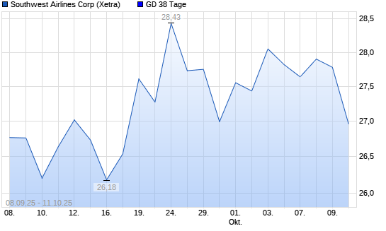 Mit dem Rücksetzer auf 27,32 EUR hat die Southwest Airlines-Aktie am 10.10.2025 die 38-Tage-Linie nach unten gekreuzt.