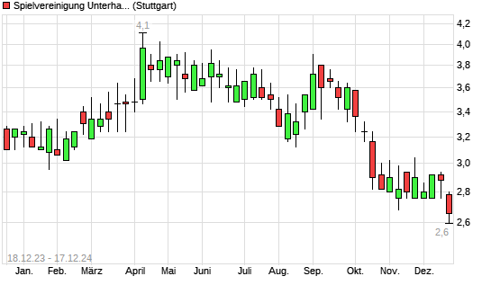Mit dem Rücksetzer auf 2,72 EUR hat die SpVgg Unterhaching Fußball-Aktie (ISIN DE000A2TR919) am 16.12.2024 ein neues 12-Monats-Tief erreicht und damit den Kurs vom 13.11.2024 eingestellt.