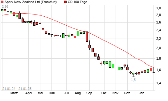 Mit dem Anstieg auf 1,63 EUR hat die Spark New Zealand-Aktie am 30.01.2025 die 100-Tage-Linie nach oben gekreuzt.