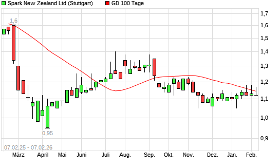 Mit dem Anstieg auf 1,15 EUR hat die Spark New Zealand-Aktie am 06.02.2026 die 100-Tage-Linie nach oben gekreuzt.