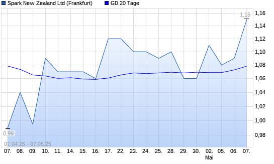 Mit dem Anstieg auf 1,09 EUR hat die Spark New Zealand-Aktie am 06.05.2025 die 20-Tage-Linie nach oben gekreuzt.