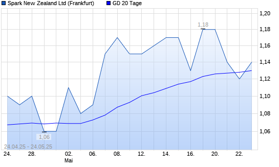 Mit dem Anstieg auf 1,14 EUR hat die Spark New Zealand-Aktie am 23.05.2025 die 20-Tage-Linie nach oben gekreuzt.