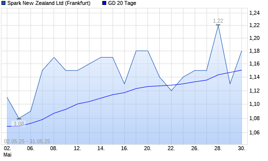 Mit dem Anstieg auf 1,18 EUR hat die Spark New Zealand-Aktie am 30.05.2025 die 20-Tage-Linie nach oben gekreuzt.
