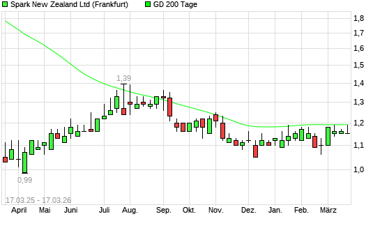 Mit dem Anstieg auf 1,19 EUR hat die Spark New Zealand-Aktie am 16.03.2026 die 200-Tage-Linie nach oben gekreuzt.