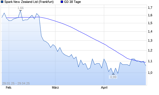 Mit dem Anstieg auf 1,10 EUR hat die Spark New Zealand-Aktie am 28.04.2025 die 38-Tage-Linie nach oben gekreuzt.