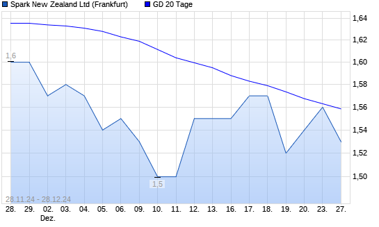 Mit dem Rücksetzer auf 1,53 EUR hat die Spark New Zealand-Aktie am 27.12.2024 die 20-Tage-Linie nach unten gekreuzt.