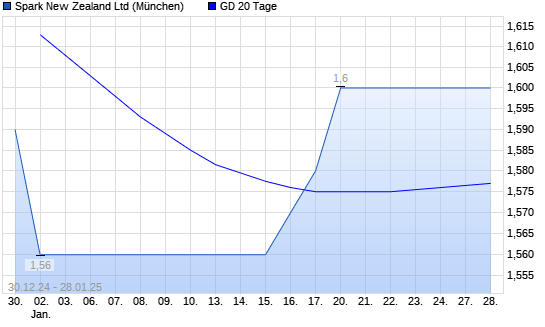 Mit dem Rücksetzer auf 1,57 EUR hat die Spark New Zealand-Aktie am 27.01.2025 die 20-Tage-Linie nach unten gekreuzt.