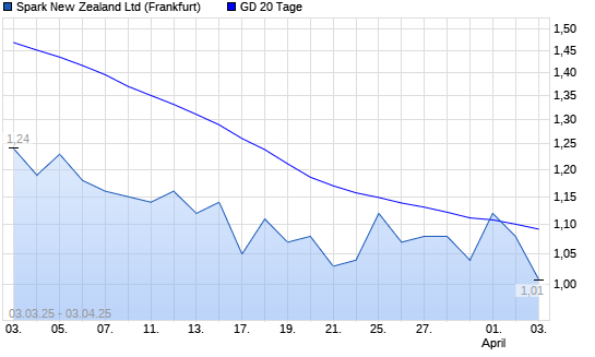 Mit dem Rücksetzer auf 1,08 EUR hat die Spark New Zealand-Aktie am 02.04.2025 die 20-Tage-Linie nach unten gekreuzt.