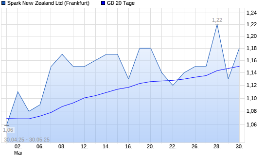 Mit dem Rücksetzer auf 1,13 EUR hat die Spark New Zealand-Aktie am 29.05.2025 die 20-Tage-Linie nach unten gekreuzt.