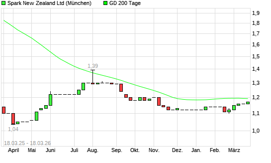 Mit dem Rücksetzer auf 1,18 EUR hat die Spark New Zealand-Aktie am 17.03.2026 die 200-Tage-Linie nach unten gekreuzt.