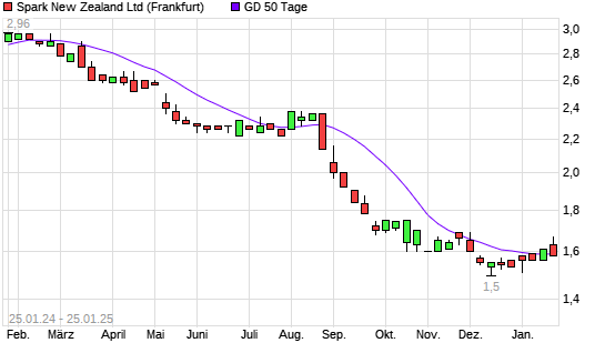 Mit dem Rücksetzer auf 1,58 EUR hat die Spark New Zealand-Aktie am 24.01.2025 die 50-Tage-Linie nach unten gekreuzt.