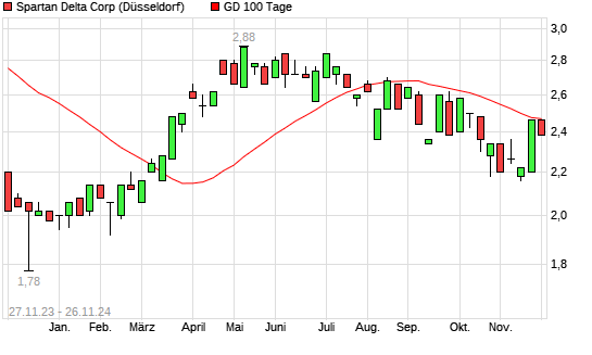 Mit dem Anstieg auf 2,42 EUR hat die Spartan Delta-Aktie am 25.11.2024 die 100-Tage-Linie nach oben gekreuzt.