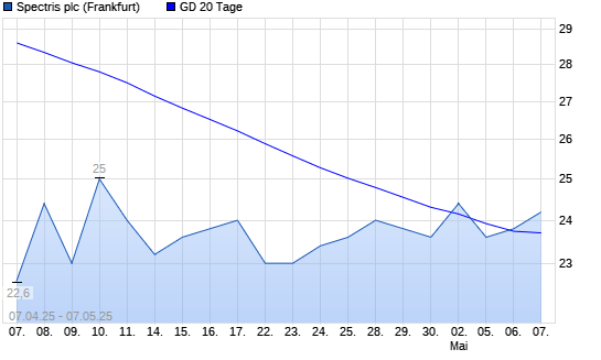 Mit dem Anstieg auf 23,80 EUR hat die Spectris-Aktie am 06.05.2025 die 20-Tage-Linie nach oben gekreuzt.