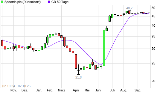 Mit dem Anstieg auf 46,80 EUR hat die Spectris-Aktie am 01.10.2025 die 50-Tage-Linie nach oben gekreuzt.
