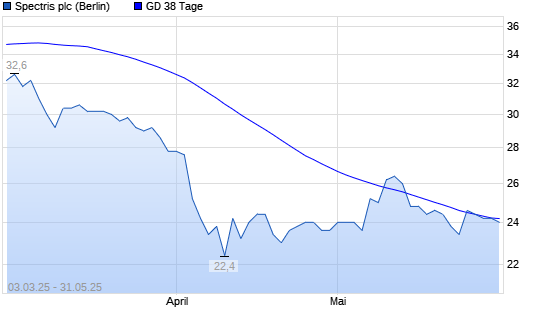 Mit dem Rücksetzer auf 24,00 EUR hat die Spectris-Aktie am 30.05.2025 die 38-Tage-Linie nach unten gekreuzt.