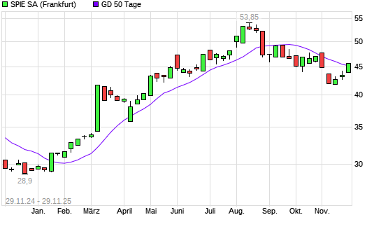 Mit dem Anstieg auf 45,64 EUR hat die Spie-Aktie am 28.11.2025 die 50-Tage-Linie nach oben gekreuzt.