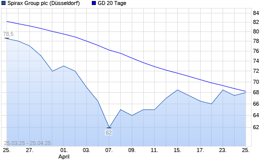 Mit dem Anstieg auf 68,50 EUR hat die Spirax-Sarco-Aktie am 24.04.2025 die 20-Tage-Linie nach oben gekreuzt.