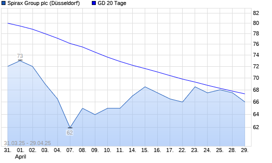 Mit dem Anstieg auf 69,00 EUR hat die Spirax-Sarco-Aktie am 28.04.2025 die 20-Tage-Linie nach oben gekreuzt.