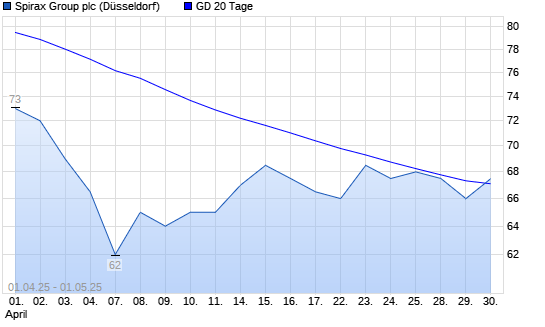 Mit dem Anstieg auf 67,50 EUR hat die Spirax-Sarco-Aktie am 30.04.2025 die 20-Tage-Linie nach oben gekreuzt.