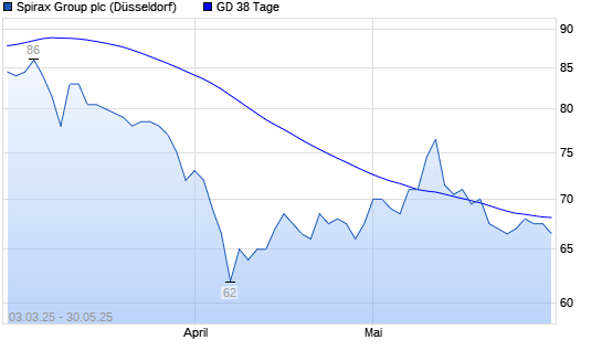 Mit dem Anstieg auf 70,00 EUR hat die Spirax-Sarco-Aktie am 29.05.2025 die 38-Tage-Linie nach oben gekreuzt.