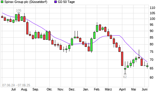 Mit dem Anstieg auf 69,50 EUR hat die Spirax-Sarco-Aktie am 06.06.2025 die 50-Tage-Linie nach oben gekreuzt.