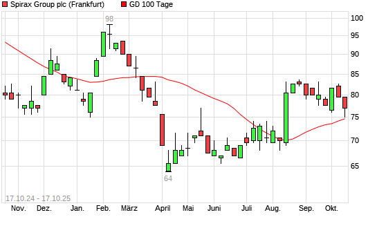 Mit dem Rücksetzer auf 72,50 EUR hat die Spirax-Sarco-Aktie am 16.10.2025 die 100-Tage-Linie nach unten gekreuzt.