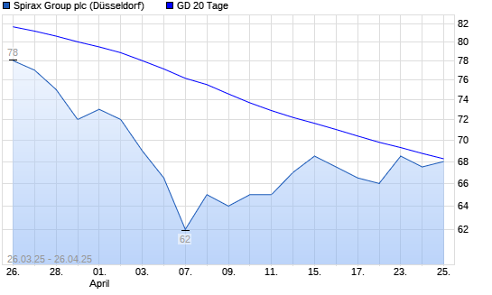 Mit dem Rücksetzer auf 68,00 EUR hat die Spirax-Sarco-Aktie am 25.04.2025 die 20-Tage-Linie nach unten gekreuzt.
