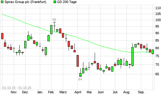 Mit dem Rücksetzer auf 76,00 EUR hat die Spirax-Sarco-Aktie am 30.09.2025 die 200-Tage-Linie nach unten gekreuzt.