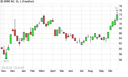 Mit dem Anstieg auf 76,00 EUR hat die Spire-Aktie (ISIN US84857L1017) am 22.10.2025 ein neues 3-Jahres-Hoch erreicht und damit den Kurs vom 21.10.2025 eingestellt.