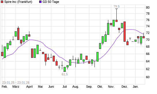 Mit dem Anstieg auf 72,00 EUR hat die Spire-Aktie am 22.01.2026 die 50-Tage-Linie nach oben gekreuzt.