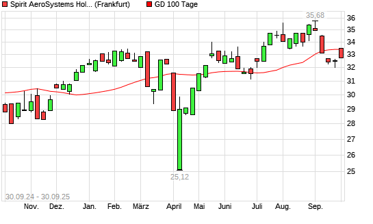 Mit dem Anstieg auf 33,52 EUR hat die Spirit Aerosystems-Aktie am 29.09.2025 die 100-Tage-Linie nach oben gekreuzt.