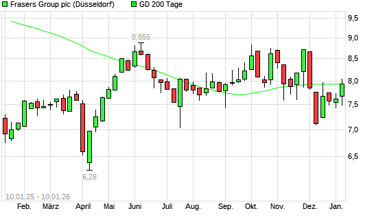 Mit dem Anstieg auf 8,05 EUR hat die Sports Direct International-Aktie am 09.01.2026 die 200-Tage-Linie nach oben gekreuzt.
