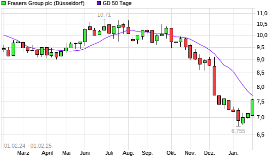 Mit dem Anstieg auf 7,61 EUR hat die Sports Direct International-Aktie am 31.01.2025 die 50-Tage-Linie nach oben gekreuzt.