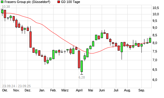 Mit dem Rücksetzer auf 8,06 EUR hat die Sports Direct International-Aktie am 22.09.2025 die 100-Tage-Linie nach unten gekreuzt.