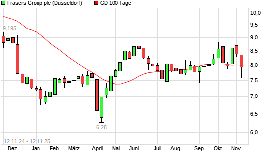Mit dem Rücksetzer auf 8,00 EUR hat die Sports Direct International-Aktie am 11.11.2025 die 100-Tage-Linie nach unten gekreuzt.