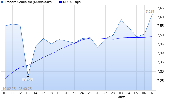 Mit dem Rücksetzer auf 7,51 EUR hat die Sports Direct International-Aktie am 07.03.2025 die 20-Tage-Linie nach unten gekreuzt.