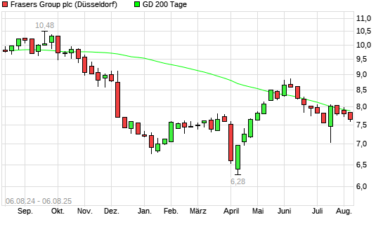 Mit dem Rücksetzer auf 7,65 EUR hat die Sports Direct International-Aktie am 05.08.2025 die 200-Tage-Linie nach unten gekreuzt.
