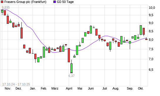 Mit dem Rücksetzer auf 8,10 EUR hat die Sports Direct International-Aktie am 16.10.2025 die 50-Tage-Linie nach unten gekreuzt.