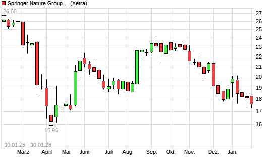 Mit dem Rücksetzer auf 17,40 EUR hat die Springer Nature-Aktie (ISIN DE000SPG1003) am 29.01.2026 ein neues 6-Monats-Tief erreicht und damit den Kurs vom 20.01.2026 eingestellt.