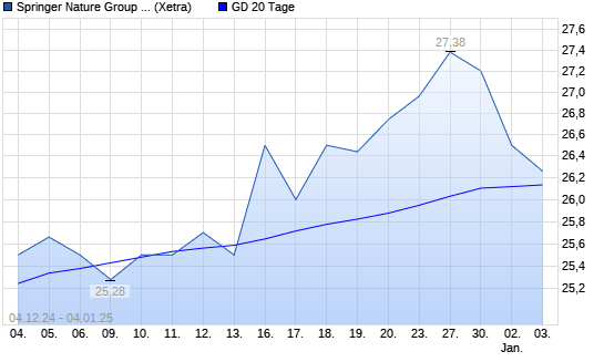 Mit dem Rücksetzer auf 26,42 EUR hat die Springer Nature-Aktie am 03.01.2025 die 20-Tage-Linie nach unten gekreuzt.